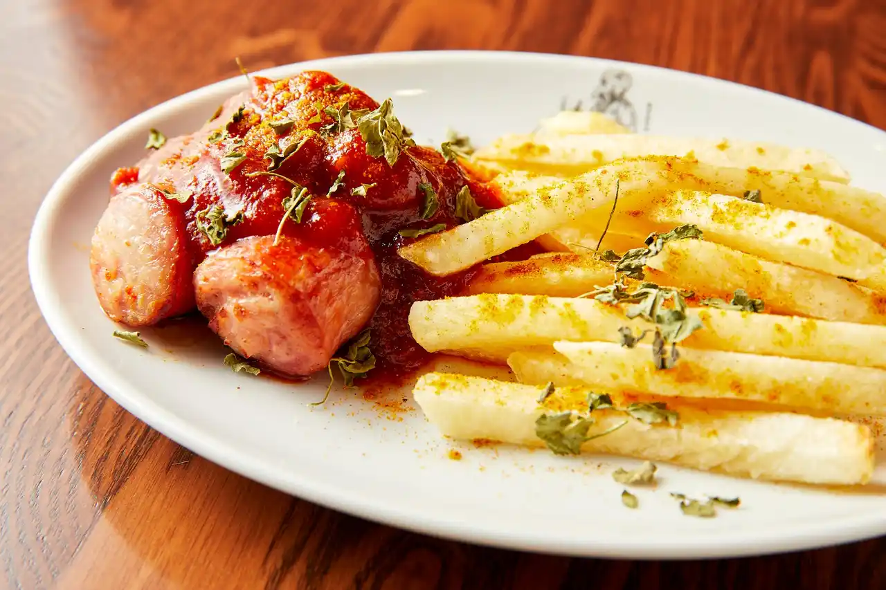 柚子ソーセージを使った「柚子ソーセージのカリーブルスト」はビールとの相性も抜群な人気メニューです! |