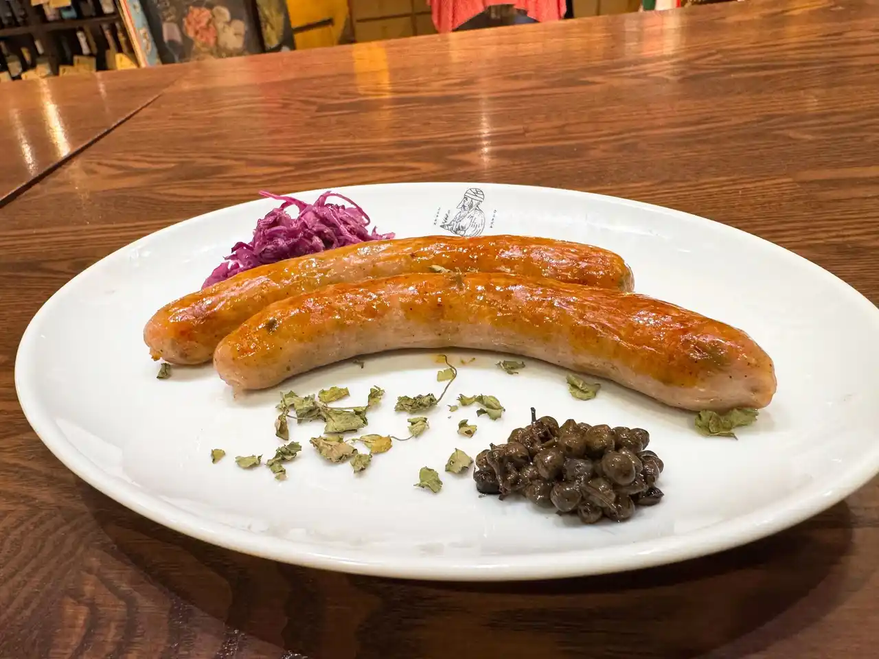 「山椒ソーセージのグリル」山椒で作る山椒キャビアを添えた山椒尽くしな一品です! |