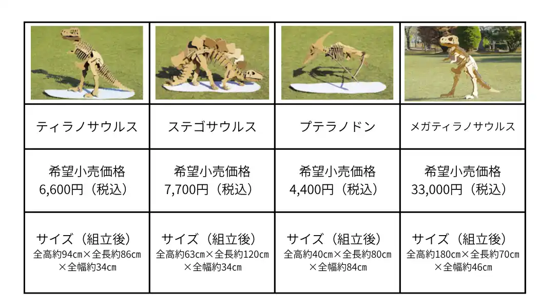 今後は、恐竜シリーズを起点に、大型動物や植物などのモチーフへと展開を予定しています。ダンボール素材を活用した製品開発を通じて、体験型プロダクトの拡充を図ります。 |
