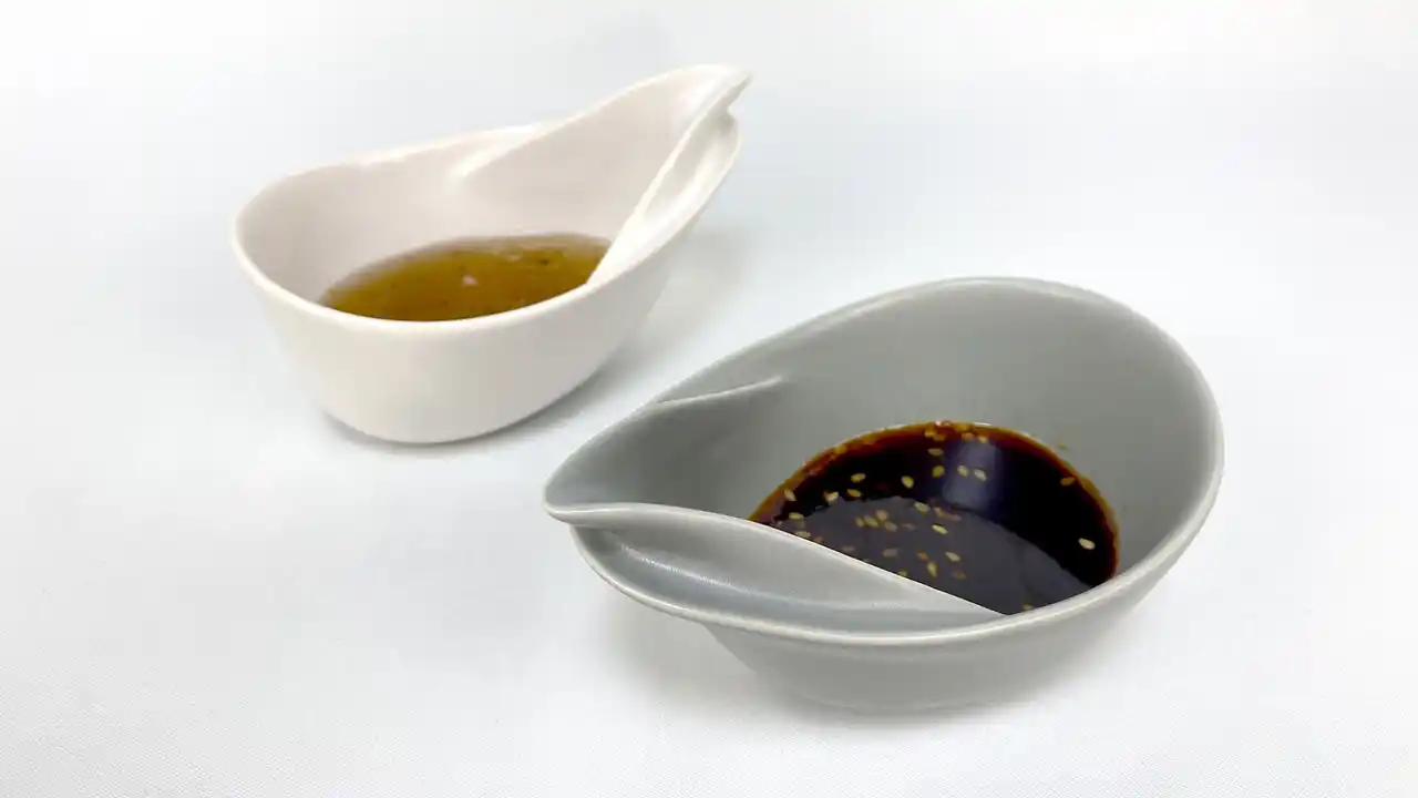 ドレッシングやタレ、オイルなど、液体の種類や性質によってどうしても起こってしまう“液だれ”。 UKEMARU.(うけまる)は、その垂れてしまった液をうつわが受け止め、さらに容器の中へ戻す構造を採用。調味料の調合から食卓での使用まで、これひとつで完結する新しいテーブルウェアです。 |