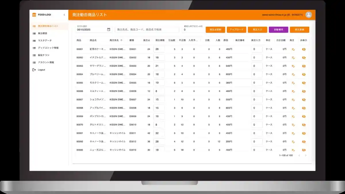 さらに、メーカーの最低ロットに合わせて発注を行うための FOOD-LOGIロット合わせ機能 と組み合わせることで、 |