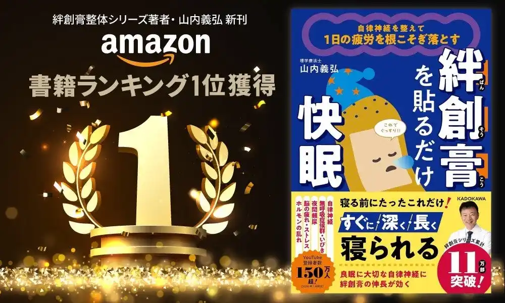 女性のための美と健康の学校を運営する株式会社ティアラボ(所在地:兵庫県芦屋市、代表:松川春花)はYouTubeチャンネル登録者数150万人を超える人気理学療法士・山内義弘氏による新刊『自律神経を整えて1日の疲労を根こそぎ落とす 絆創膏を貼るだけ快眠』(KADOKAWA)が、2026年3月11日時点のAmazon売れ筋ランキング「睡眠」カテゴリーにて第1位を獲得したことを報告いたします。 |