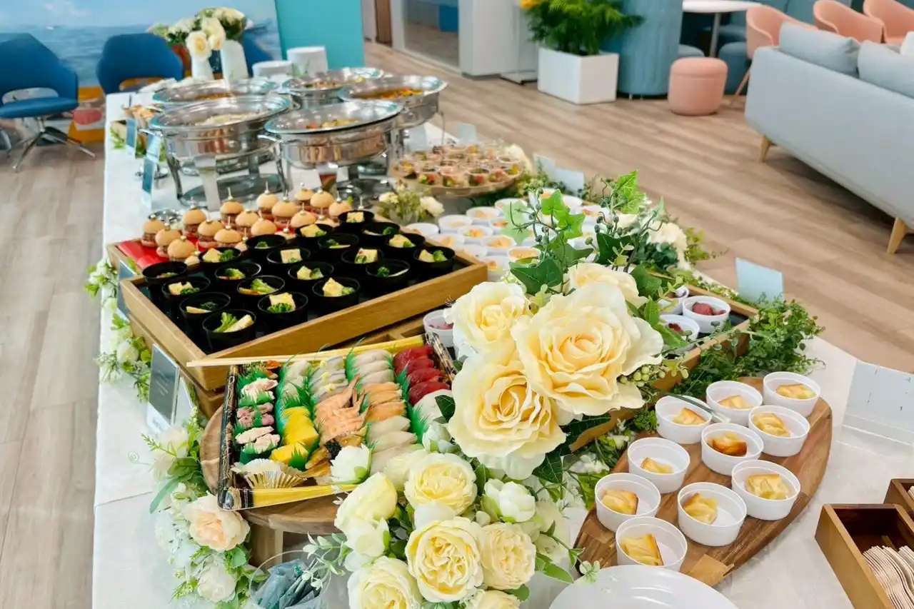 近年は、料理の提供だけでなく、会場装飾やライブパフォーマンス型のフード演出を組み合わせることで、日常のオフィス空間を非日常的なイベント会場へと変える取り組みが見られます。参加者同士が自然に会話を弾ませられる場づくりにおいて、ケータリングは重要な役割を担っています。 |