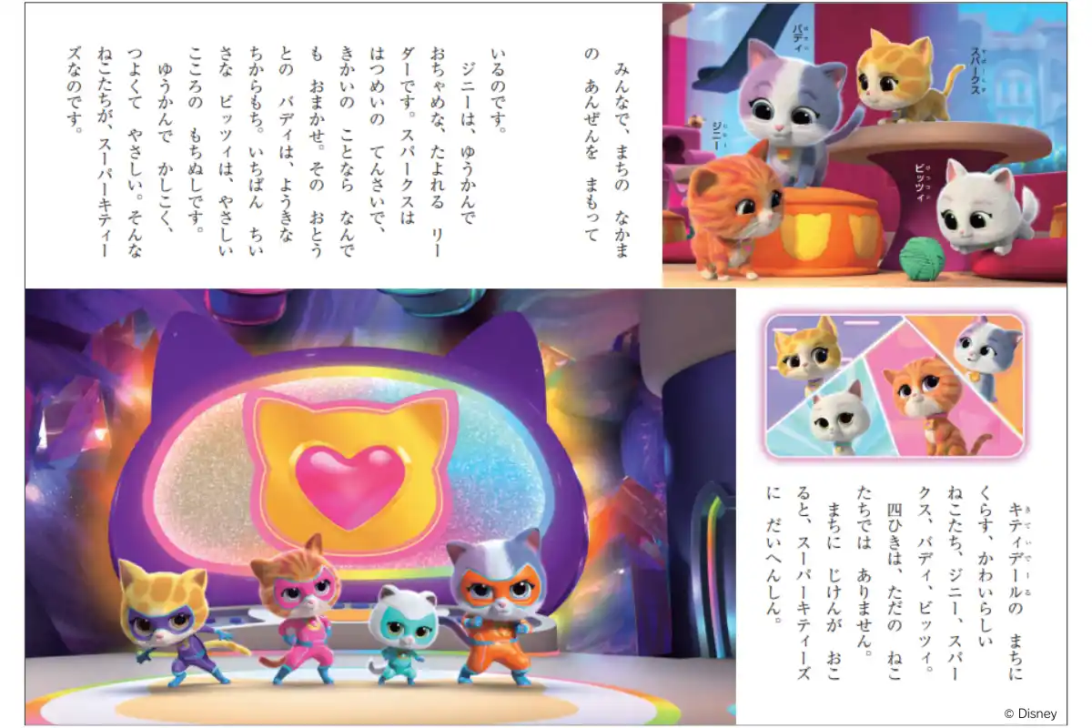 そんなアニメーションシリーズを日本で初めて書籍化した『スーパーキティ ディズニーゴールド絵本』を、講談社より2026年3月23日(月)に発売します。 |