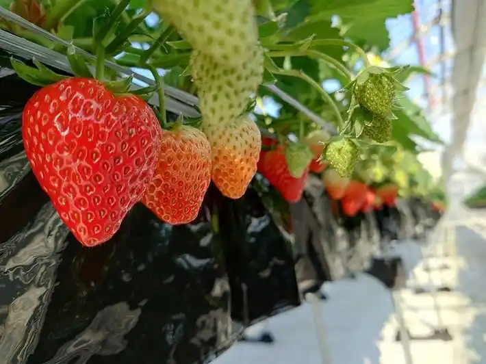 温室ハウス内のいちご |
