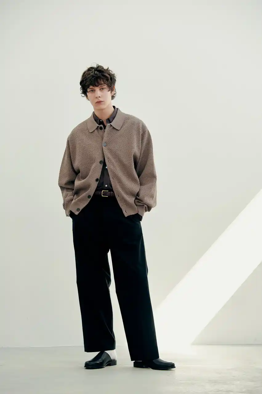 柔らかな風合いのカーディガンを主役に、リラックス感と品の良さを両立したスタイリング。程よくゆとりを持たせたシルエットが、抜け感のある大人の余裕を演出する。ミニマルなデザインながらも素材の表情が際立ち、シンプルな中に奥行きをプラス。ワイドパンツと合わせることで、都会的で洗練されたカジュアルスタイルに仕上げている。 |