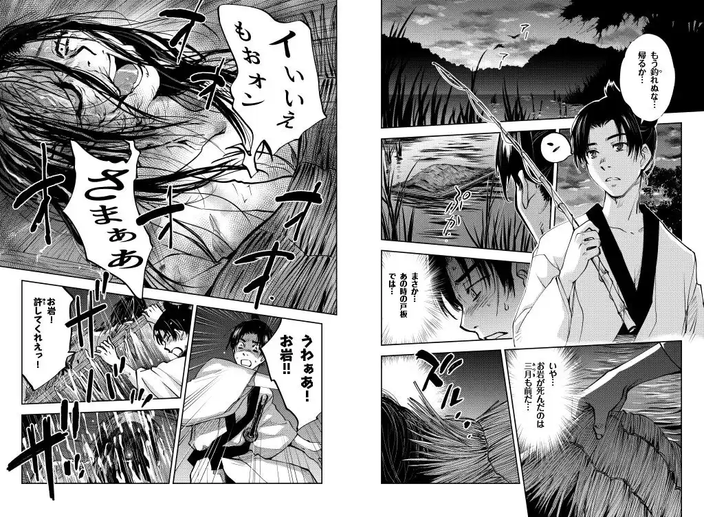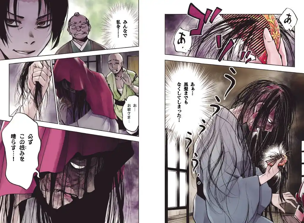 | 殺しのことはごまかし、再びお岩と暮らし始めた伊右衛門だったが、なかなか武士に戻れない境遇に苛立ちを感じ、子どもを産んだばかりで体調がすぐれないお岩にもつらくあたるようになり……。 | ||||||||||||||||