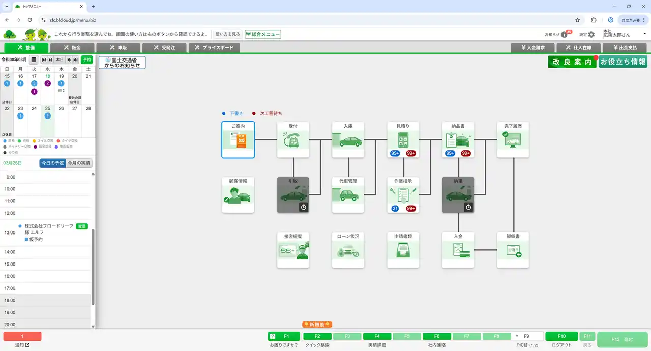 株式会社WECARS(本社:東京都千代田区、以下「WECARS」)は、国土交通省による車検業務のコンプライアンス強化ガイドラインに基づき、モビリティ関連事業者向けにシステムの開発・提供を行う株式会社ブロードリーフ(本社:東京都品川区、以下「ブロードリーフ」)が提供する業務クラウドサービス「Maintenance.c(メンテナンスドットシー)」を採用し、新たな車検・整備システムの運用を開始しました。 |