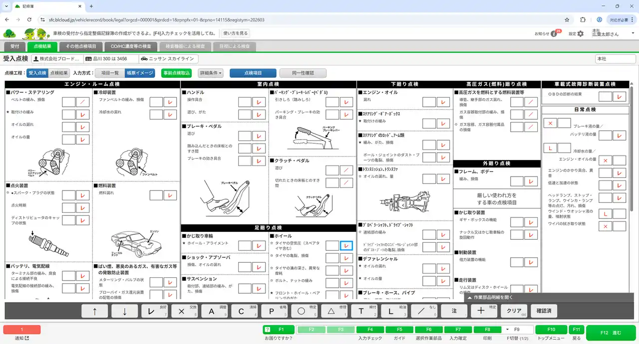 また、システムを使用するメカニック一人ひとりにIDとパスワードが設定されており、すべての作業が時刻・担当者付きで記録されます。これにより改ざんのできない透明なデータとして管理することが可能となります。 |