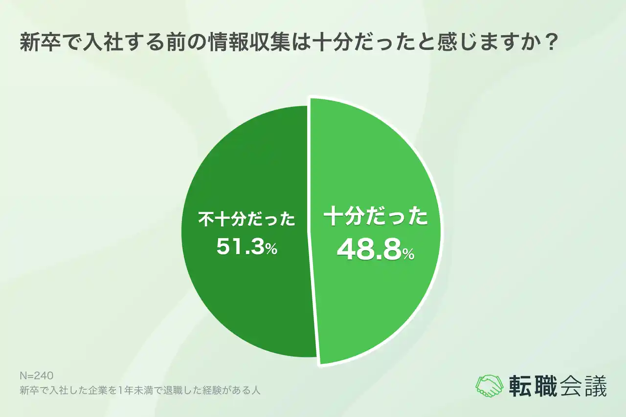 新卒で入社した企業を1年未満で退職した経験がある240名を対象に、退職の背景や入社前の情報収集状況について調査しました。 |
