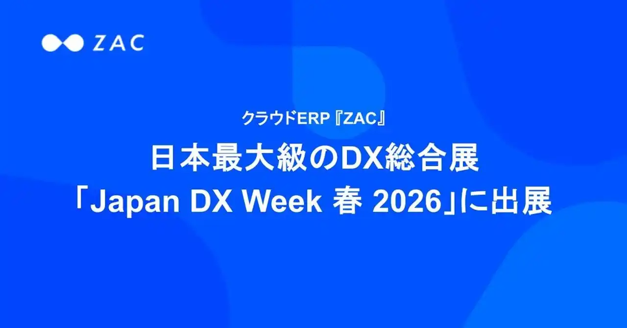 株式会社オロ(本社:東京都目黒区、代表取締役社長執行役員:川田 篤 以下、オロ)は、クラウドERP『ZAC』を出展製品として、2026年4月8日(水)から2026年4月10日(金)までの3日間、東京ビッグサイトにて開催される「Japan DX Week 春 2026」に出展することをお知らせします。 |