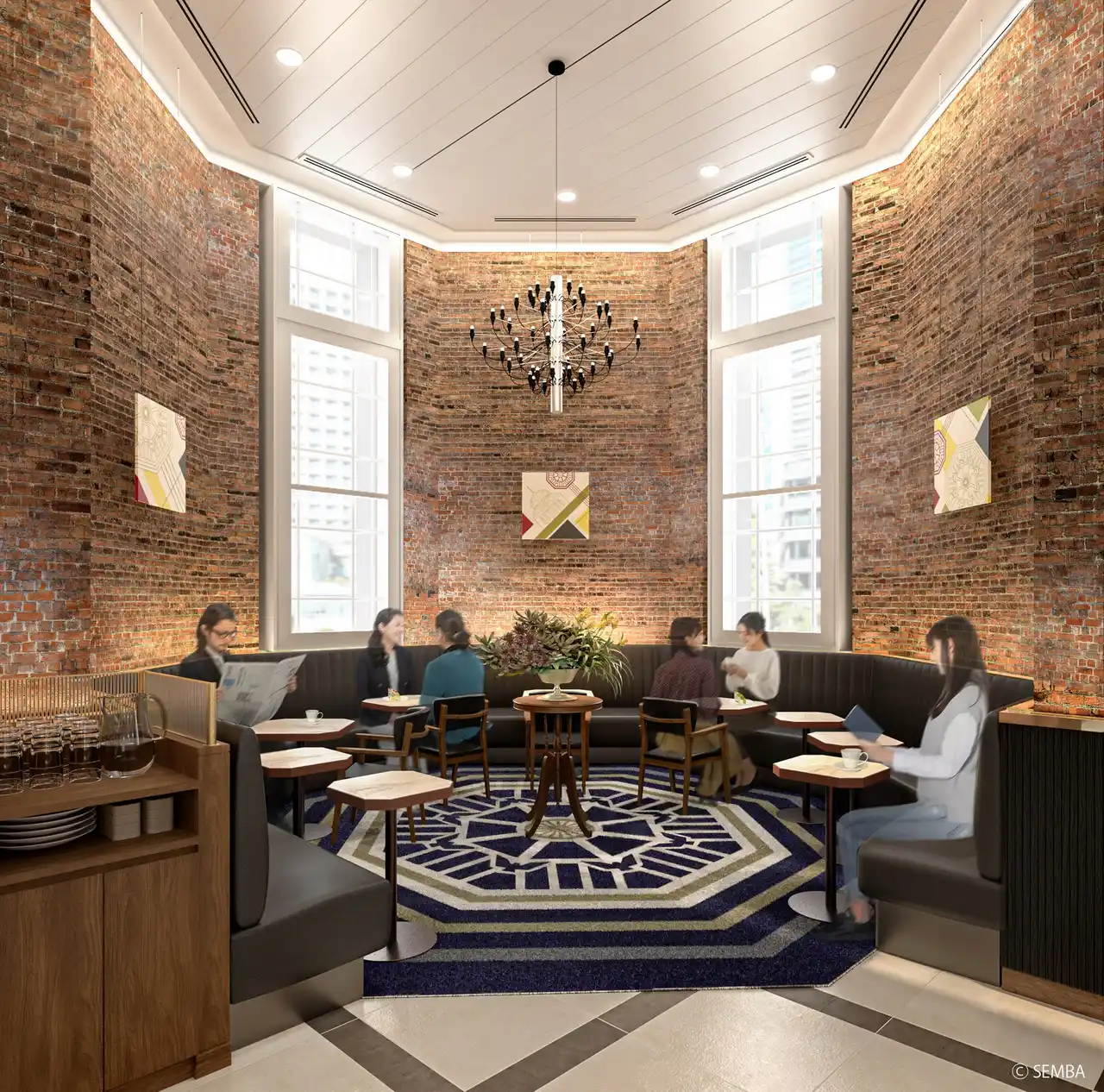 見上げれば東京駅特有の「八角形天井」、足元にはその意匠を模した「特注カーペット」のあるシンボルシートなど、「時を味わい、文化を愉しむ空間」をご提案いたします。 |
