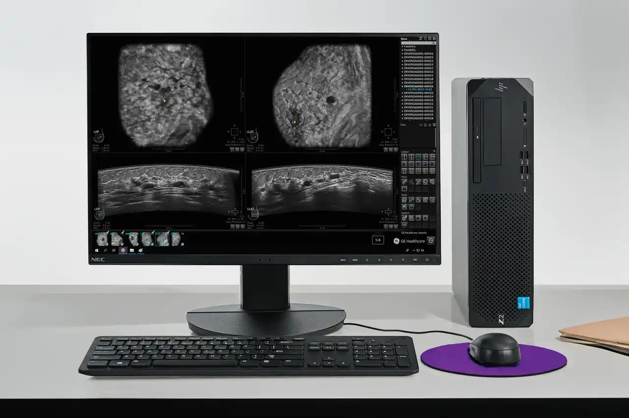 乳房全体を三次元的に自動でスキャンする「Invenia ABUS」は2014年に日本で販売開始以来、改良を重ねてまいりました。この度販売される「Invenia ABUS Premium」は、ABUSシリーズを8年ぶりに刷新し、初めてAI技術を取り入れた機能*を搭載した最新型モデルです。また、ハードウェアやプローブも刷新され、検査効率・再現性・ワークフローの更なる向上を目指します。 |