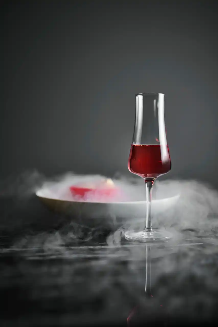 円形に焼き上げたメレンゲに香り豊かな桜クリームとフレッシュストロベリー、北海道産ミルクジェラートを重ね、桜色の綿菓子をふんわりと飾りました。お客様の目の前で仕上げに「酒サクラソース」を注ぐと、綿菓子がそっと溶けていき、その姿は散り行く桜の儚さを表現しています。 |