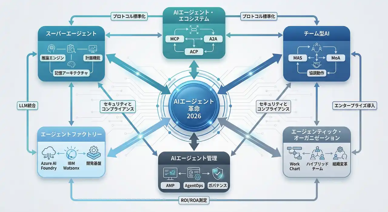 2026年は、MCP vs A2A vs ACPの標準化競争が最高潮に達する年である。Anthropic・Linux Foundation連合、Google連合、IBM連合がそれぞれのプロトコルで覇権を争う。日本企業は、複数プロトコル対応を視野に入れた戦略が求められる。 |