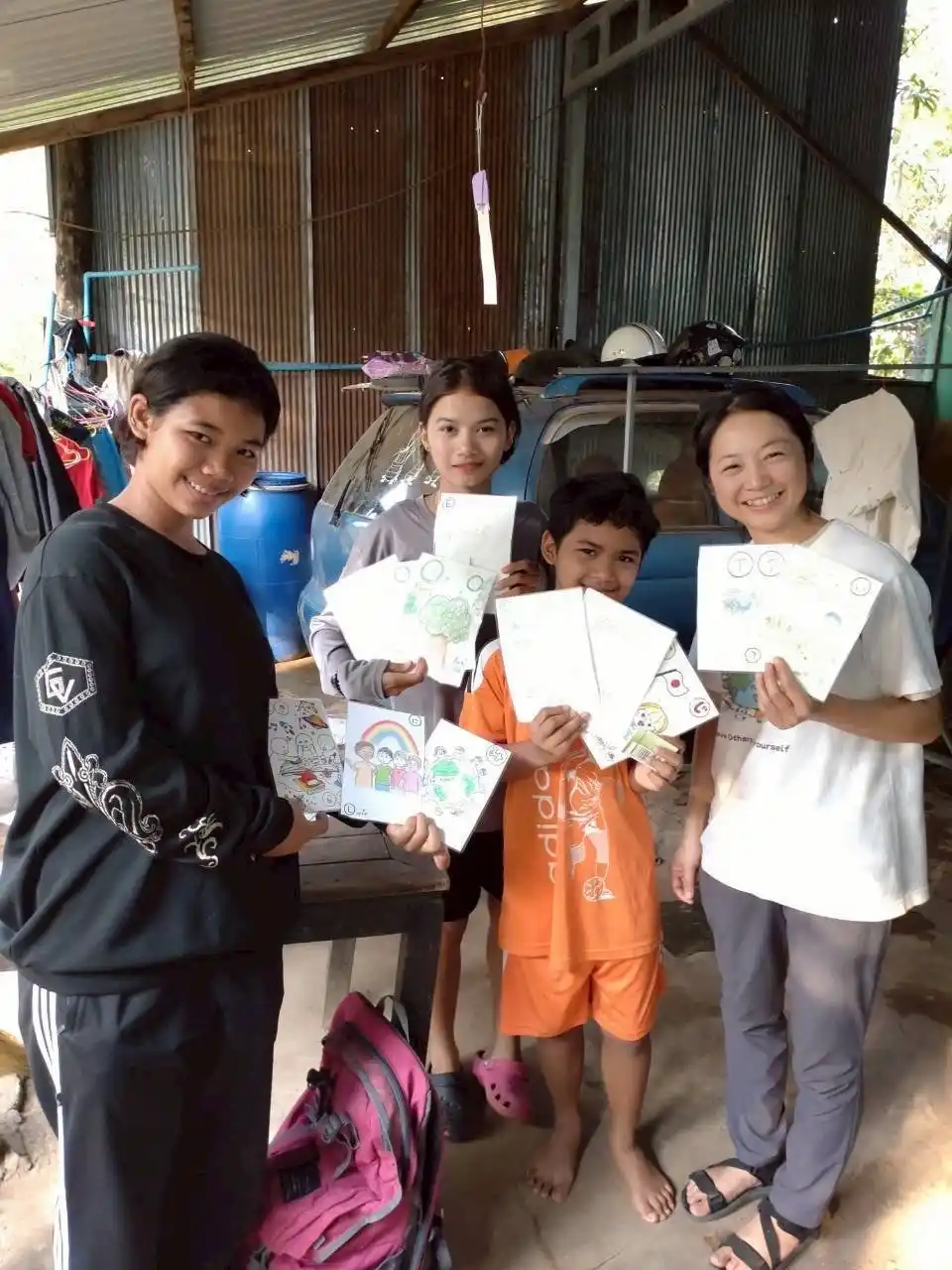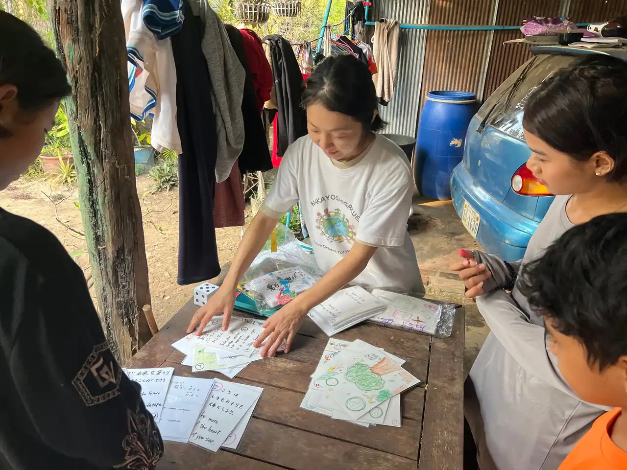 そのような背景をもつカンボジアで、早稲田佐賀の生徒たちが制作したカルタは、単なる遊び道具ではなく、平和・人権・環境・未来を語り合うための教材として位置づけられました。戦争を経験した地域で、子どもたちが言葉を交わし、絵を見て、価値観を共有することには大きな意味があります。教室で作られた一枚一枚の札が、国境を越えて対話を生み出し、学びを媒介として人と人を結び直す――それこそが、なかよし学園が重視する「世界とつながる学び」の実装です。早稲田佐賀の生徒たちが作った教材は、まさにその役割を果たしました。 |