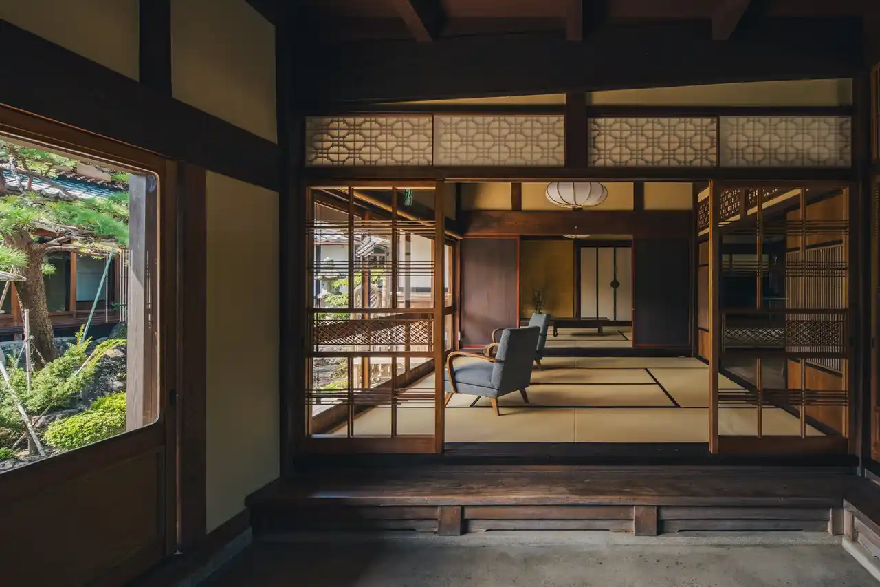 建物は、琵琶湖からほど近いエリアに位置し、広大な敷地に建つ築135年の日本邸宅です。これまで空き家となっていた建物を、解体ではなく改修という選択で再生し、「住まいづくりの知見を、滞在体験として開く」ことを目的に、一日一組限定の宿として運営しています。 |
