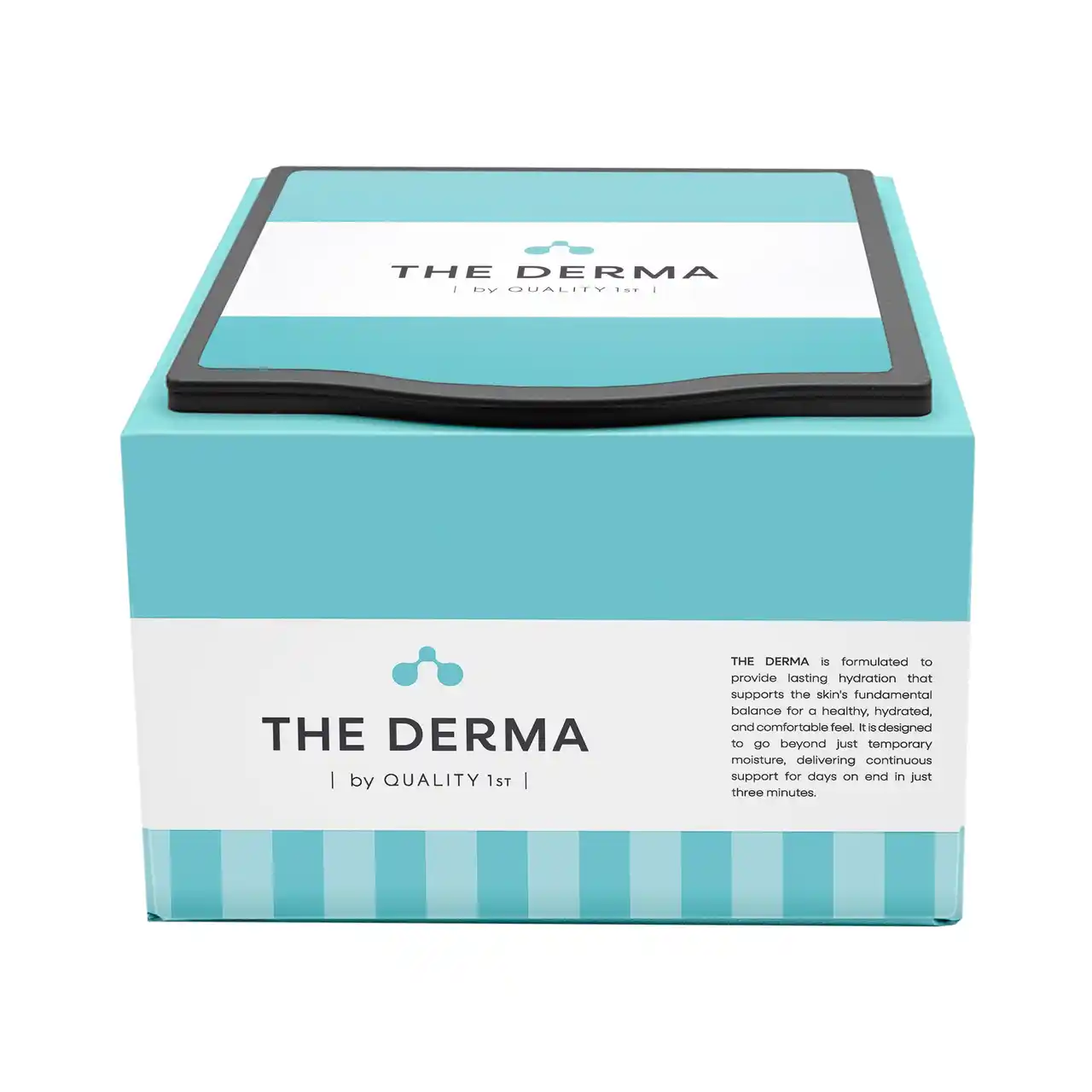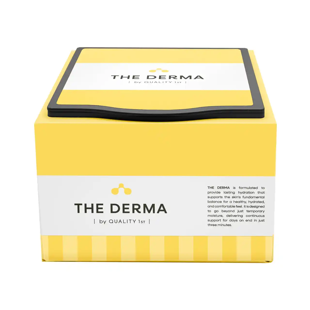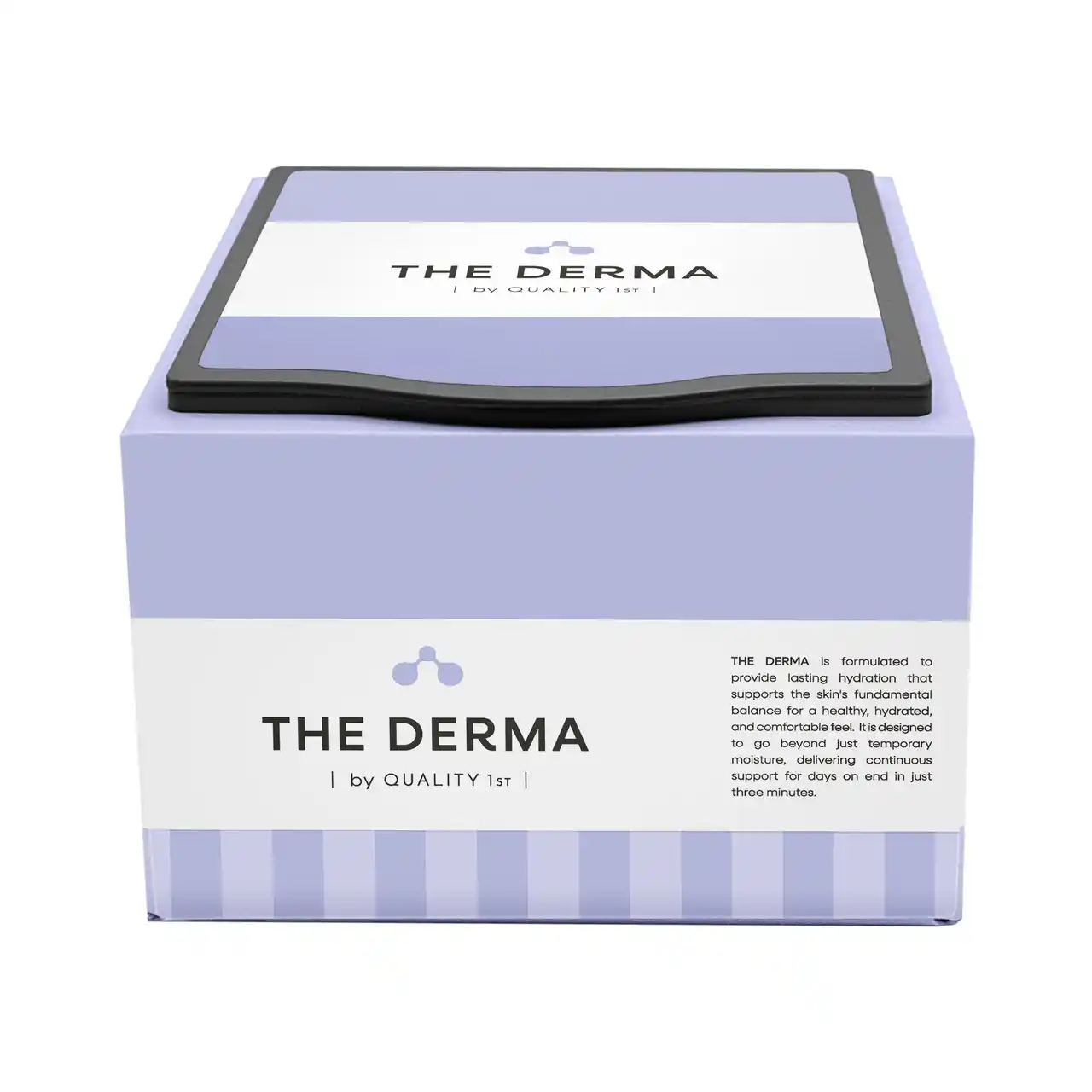 ブランド名「ザ・ダーマ」の語源でもある「DERMATOROGY( 皮膚科学)」に則り、科学感・研究感を想起させるモチーフとして「分子構造」の形状を活用。うるおいの雫を感じさせるフォルムで分子構造をデザインし、「長時間うるおい・ツヤが続く」というザ・ダーマ独自のベネフィットを直感的に表現。 |