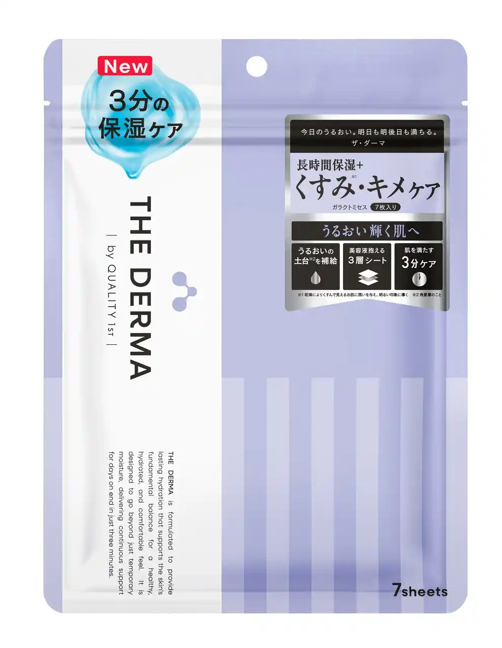累計出荷枚数2億枚突破*¹の毎日お使いいただけるデイリーケアシートマスク「ザ・ダーマ」シリーズがブランドロゴ、コンセプト、パッケージも新たに中身も進化してリニューアル。肌にいいことをぎゅっと1枚に入れ込む発想で、肌を構成するうるおい成分であるアミノ酸*³・PCA*⁴・セラミド*⁵を全方位に理想的なバランスで配合し、肌の土台*⁶を整えます。また、 たっぷりの美容液を抱え込む3層構造シートをはじめ、5つのフリー処方や厳選した国産素材を採用し、安心感と品質も追求。長時間うるおい、使い続けるほどゆらぎにくく美しい肌へ導きます。たった3分でお手入れ完了。 |