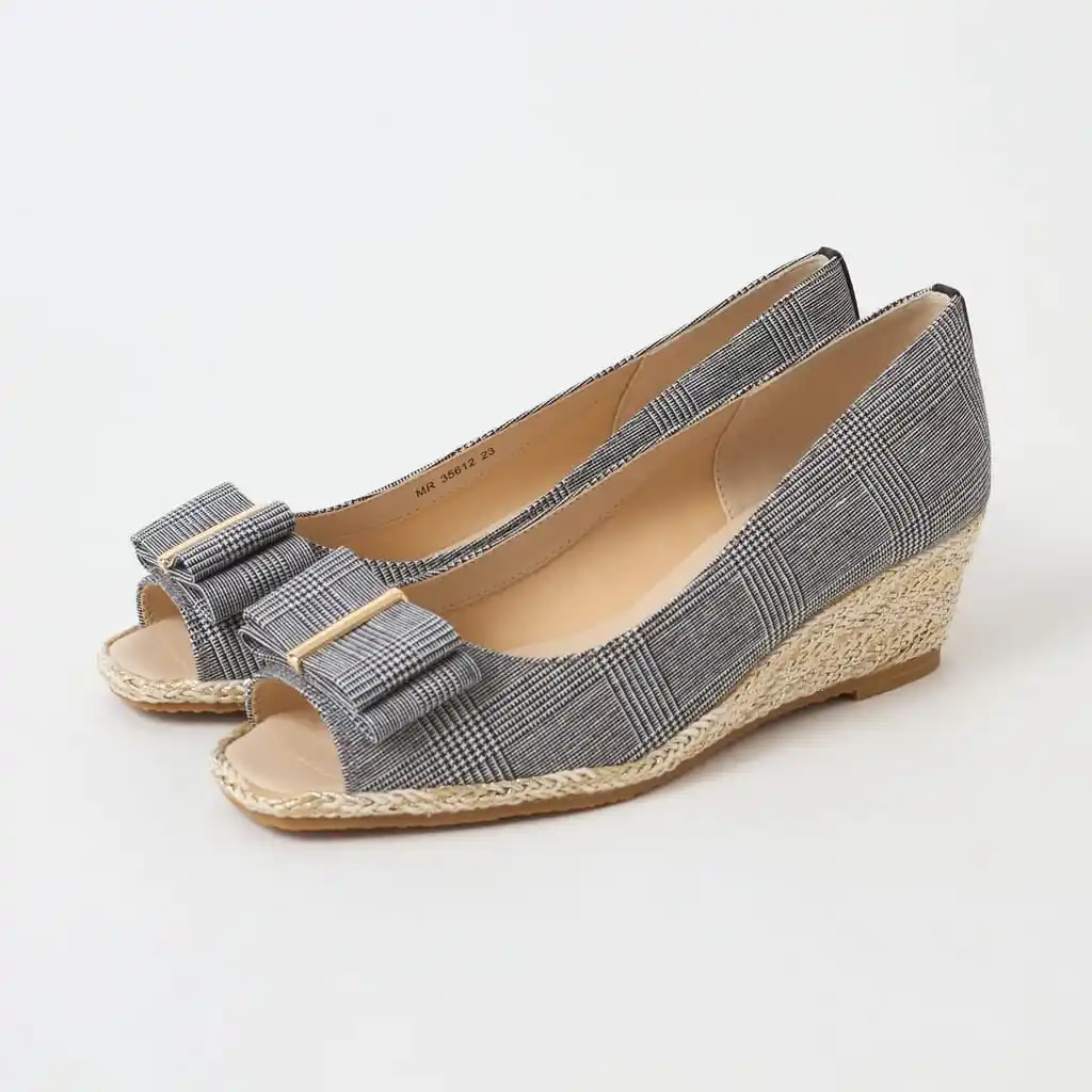 リボン付きオープントゥウェッジサンダル |