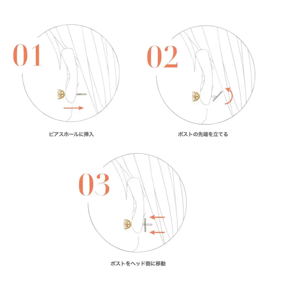 | 金属アレルギー対応の素材を使用し、敏感な肌にも優しいピアスです。また、錆びに強い表面加工を採用しており、長くご愛用いただけます。 | |||||||||