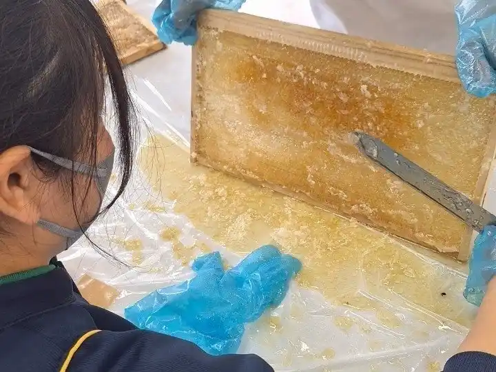 蜜蓋を切る様子 |