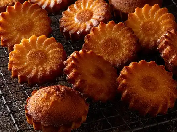 | \店内仕上げ/焦がしバターを使用したフィナンシェ生地をマーガレット型に入れ、各店舗の厨房オーブンで香ばしく焼き上げました。手土産やお配り品にぴったりの一品です。 | |||||||||