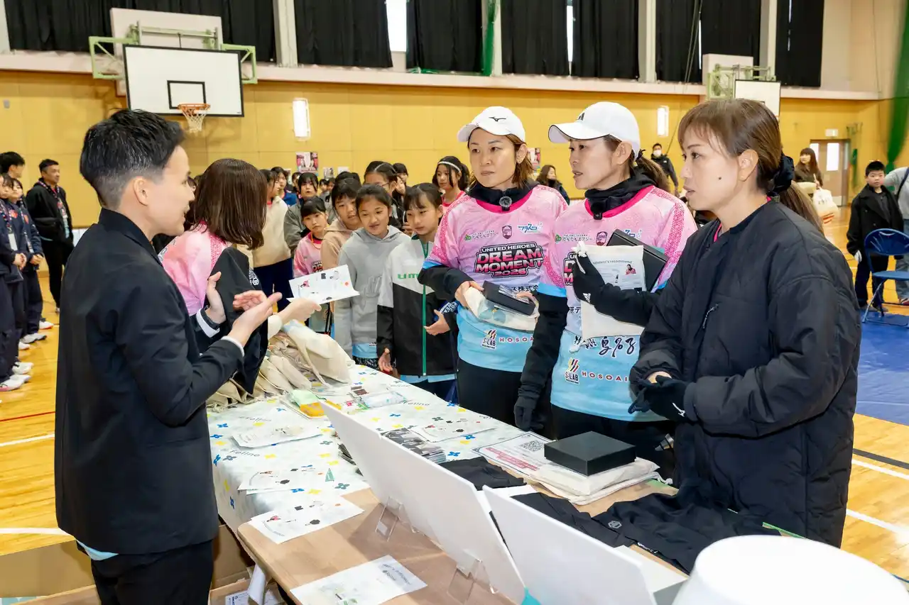 翌3月7日には、一般社団法人福知山ユナイテッドの女子アスリート応援プロジェクト「Bloomine」に参加。株式会社wagamamaと共同でブースを出展しました。スポーツに取り組む子どもたちへ「もしもの時のお守りポーチ」を配布し、体調の変化に気づくこと、そして周囲の大人がそれを支える重要性を伝えました。当日は、元サッカー女子日本代表の澤穂希選手、元バレーボール日本代表の竹下佳江選手を迎え、女子アスリートや保護者、指導者へ向けたメッセージも発信。働く環境だけでなく、スポーツや教育の現場にも共通する課題として、女性の健康と向き合う必要性が共有されました。 |