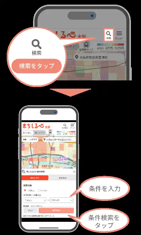 大阪の家賃相場や最寄駅、コンビニ立地状況、治安情報等のデータを地図上に搭載 「まちしるべ大阪」サイトはこちら▼ https://osaka.machi-shirube.jp/ |
