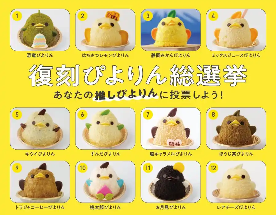 愛知県の地元食材「名古屋コーチン」の卵を使ったプリンを、バニラの香り豊かなババロアで包み込み、粉末状にしたスポンジをまとわせた、ふんわり「ひよこ」の形に飾り付けた生スイーツです。 名古屋駅構内の店舗と、愛知県春日井市内の製造工房併設店舗で販売しています。 お陰様で累計販売個数は500万“ぴよ”を突破し、2023年には人物以外では初めて(公財)名古屋観光コンベンションビューローにより「名古屋観光特使」の委嘱を受けました。 2026年7月1日(水)に誕生15年を迎えます。 |