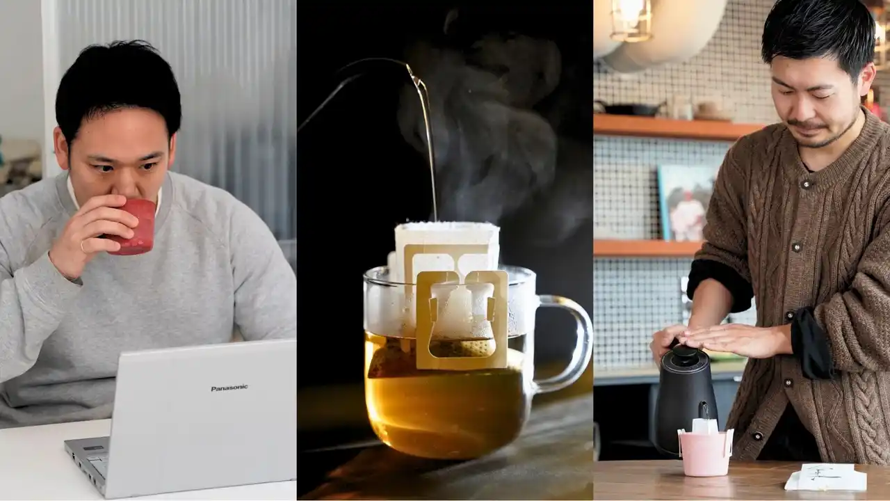 ドリップパック形式の採用で急須不要。愛用のマグとケトルで、コーヒーと同じ作法で淹れられる「馴染み深さ」の提供。 |