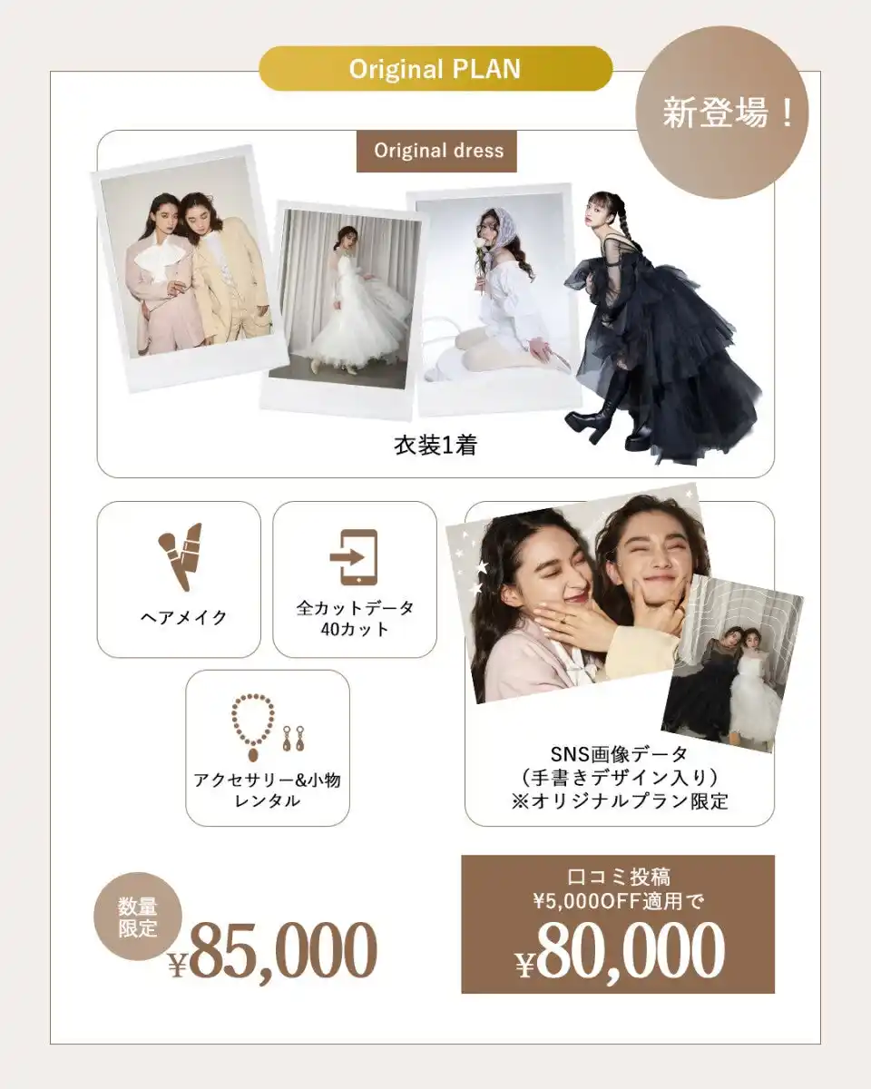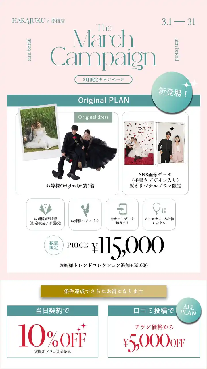 | フォトスタジオでありながら自社でドレス作成を行うaim/aimme東京原宿店から新プランが登場。 |
