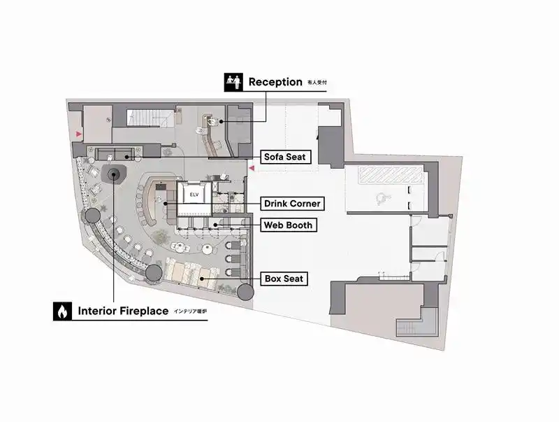 「NOW/HERE新宿四谷」は、全8フロアからなるシェアオフィスです。1階および6階には、合計300平方メートル を超える共用ラウンジを設けています。2~4階は、2席から20席まで対応可能な専用個室を配置。5階・7階・8階は、1フロア1テナント専用のハーフセットアップオフィスとし、用途や規模に応じた多様な働き方に対応しています。1階ラウンジには暖炉、6階ラウンジにはアクアリウムを設け、他では味わえない特別な空間を演出しています。また、会議室や多数のWEBブースを備え、打ち合わせやオンライン会議にも対応可能です。さらに、6階には屋上テラスも設けています。 |