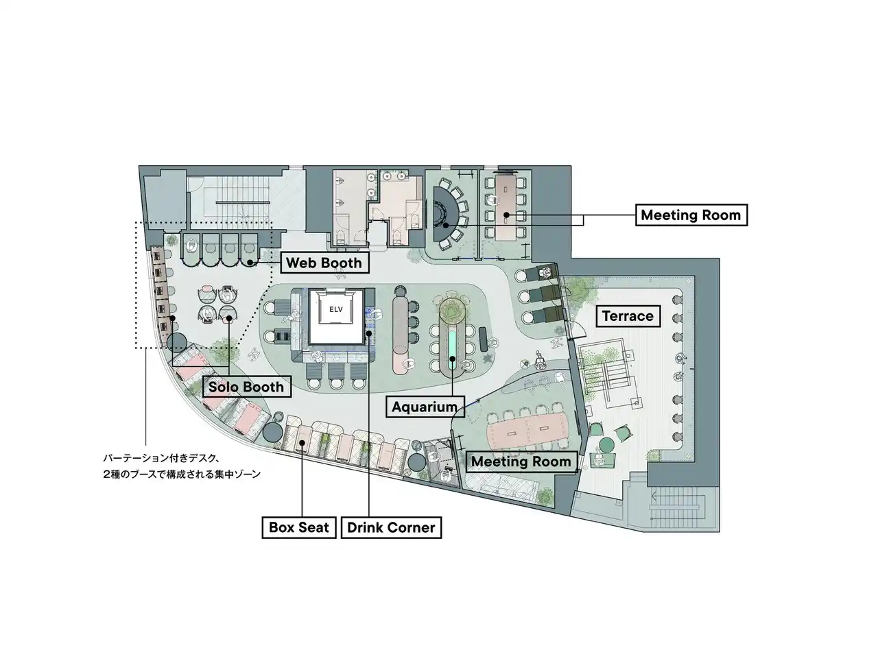 個人の働き方に寄り添いながらも、チームの創造性やつながりを育む空間設計を通じて、柔軟性と快適性の両立を図ります。 |