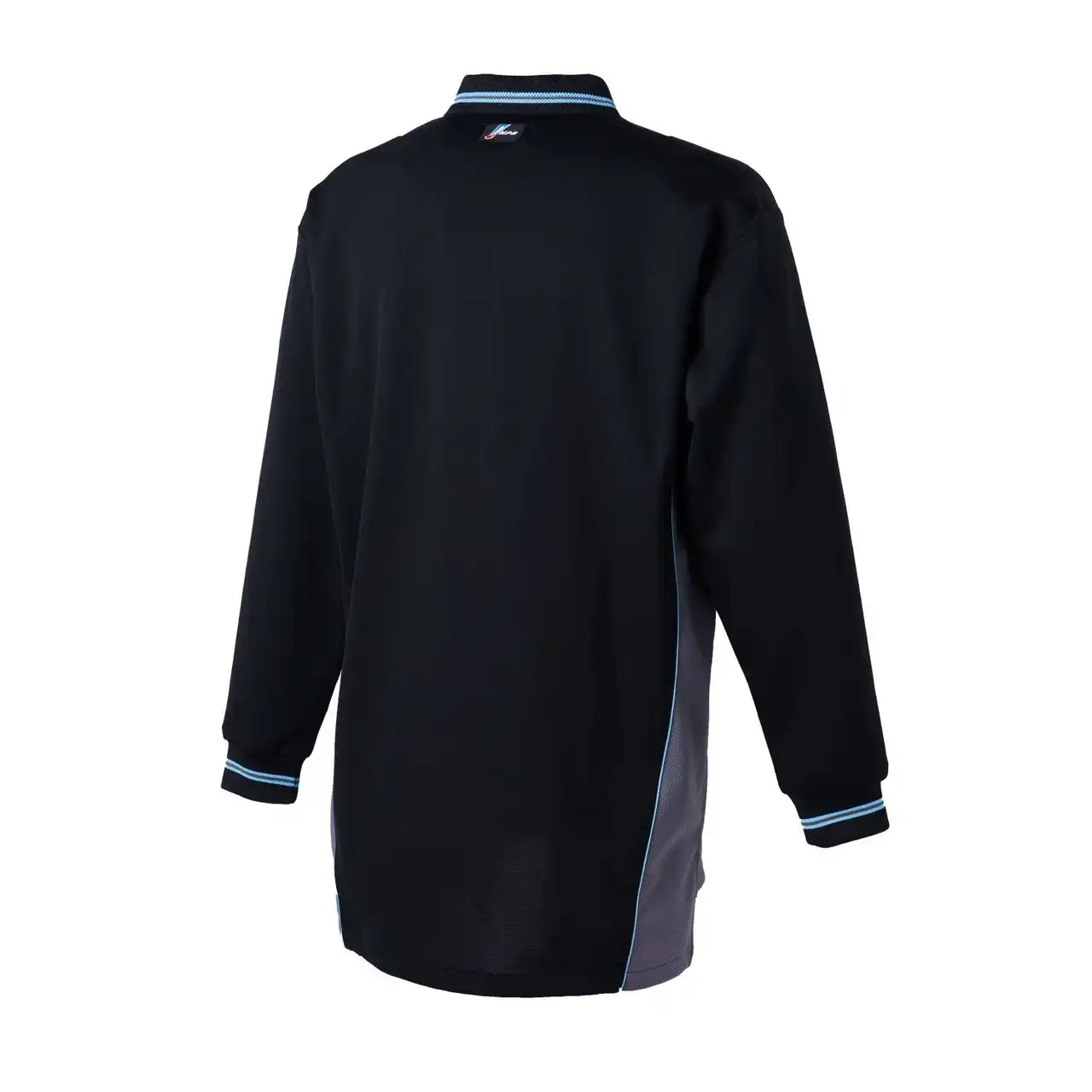 胸と後襟下に刺繡ワッペンのNPBマークを配置したオフィシャル長袖審判シャツ。黒を基調に襟元と脇部分へチャコールカラーを配色した「ブラック」で、半袖シャツよりも厚手の素材を使用。優れた保温性を実現しており、冷え込みが残るナイトゲームや、やや肌寒さを感じる春先の開幕シーズンにおいても、審判員のパフォーマンスを温かくサポートする最適な一枚に仕上がっています。 |