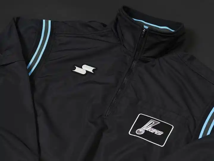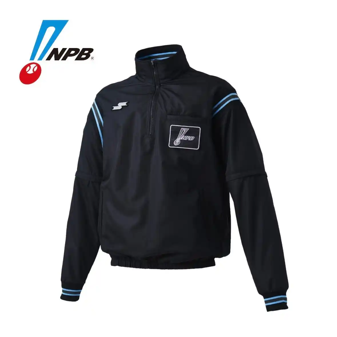 胸元と後襟下に刺繍ワッペンのNPBマークを配置したオフィシャル審判ジャケット |