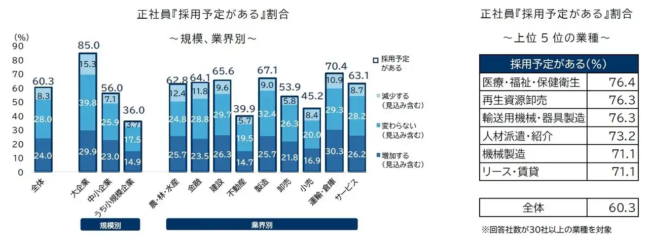 正社員『採用予定がある』割合は60.3% 3年ぶりに上昇、2年ぶりに6割を回復 |