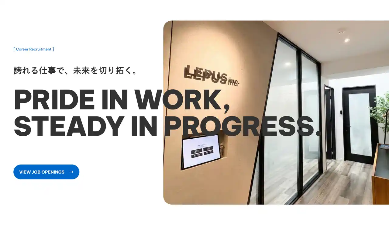 システム開発・プロダクト制作を行う株式会社レプス(本社:京都市中京区御池通堺町西入御所八幡町231 SHICATA QUATORZE BLDG 8F、代表取締役:堀 公亮、以下「レプス」)は、2026年3月23日、採用ページを全面リニューアルいたしました。創業10年目を迎えるにあたり、新たな採用コンセプト「誇れる仕事で、未来を切り拓く。/ Pride in Work, Steady in Progress.」を策定。あわせて、効率的な働き方を裏付ける「数字で見るレプス」を初公開したことをお知らせいたします。 |