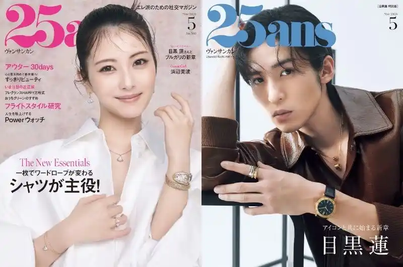 | 全世代のエレガントな女性たちに支持されるクラスマガジン『25ans(ヴァンサンカン)』(発行:株式会社ハースト婦人画報社、本社:東京都港区、代表取締役社長:ニコラ・フロケ)は、浜辺美波さんをカバーガールに迎えた5月号に加えて、目黒蓮さんが表紙を飾る特別版を2026年3月27日(金)に同時発売します。 | ||||||||