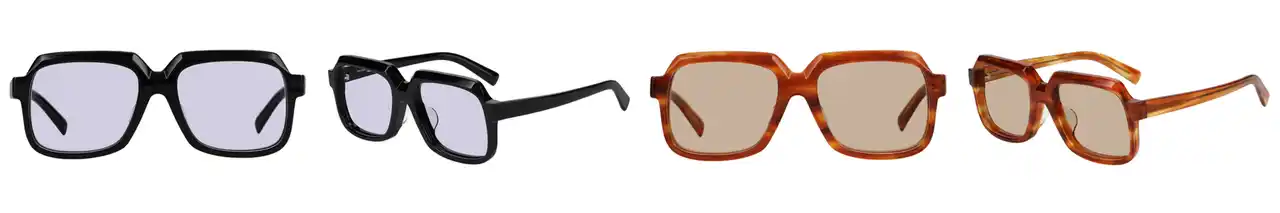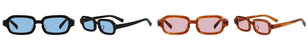 約3.5mmの厚みを持たせたフロントデザインが、上質で洗練された存在感を演出。憧れのデザイナーズサングラスのように、コーディネートの主役になる一本です。アセテート素材の3型にはブラックとデミ柄、メタル素材の3型にはゴールドとシルバーを採用し、誰でも取り入れやすいカラーで展開します。 |