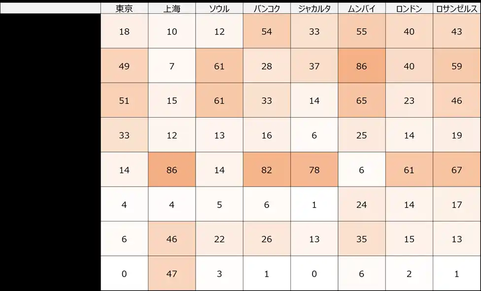 調査地域: 東京(日本)、上海(中国)、ソウル(韓国)、ムンバイ(インド)、 |