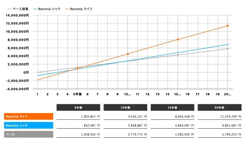 今回の実証物件では、施工前家賃33,000円から施工後58,000円へ改善し、募集開始から約1.5か月で成約しました。 また、通常の原状回復を行った場合との比較による当社試算では、10年後の税引後キャッシュフローで約180万円の差益を見込んでいます。 重要なのは、単に賃料を引き上げたことではなく、“上げても選ばれる理由”を設計できたことです。 Renottaは、安さで比較される部屋から、価値で選ばれる部屋への転換を提案します。 |