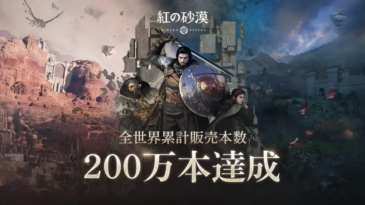 | Pearl Abyssは2026年3月20日午後11時、公式SNSを通じて、『紅の砂漠』の全世界累計販売本数が200万本を販売突したことをお知らせしました。 | |||