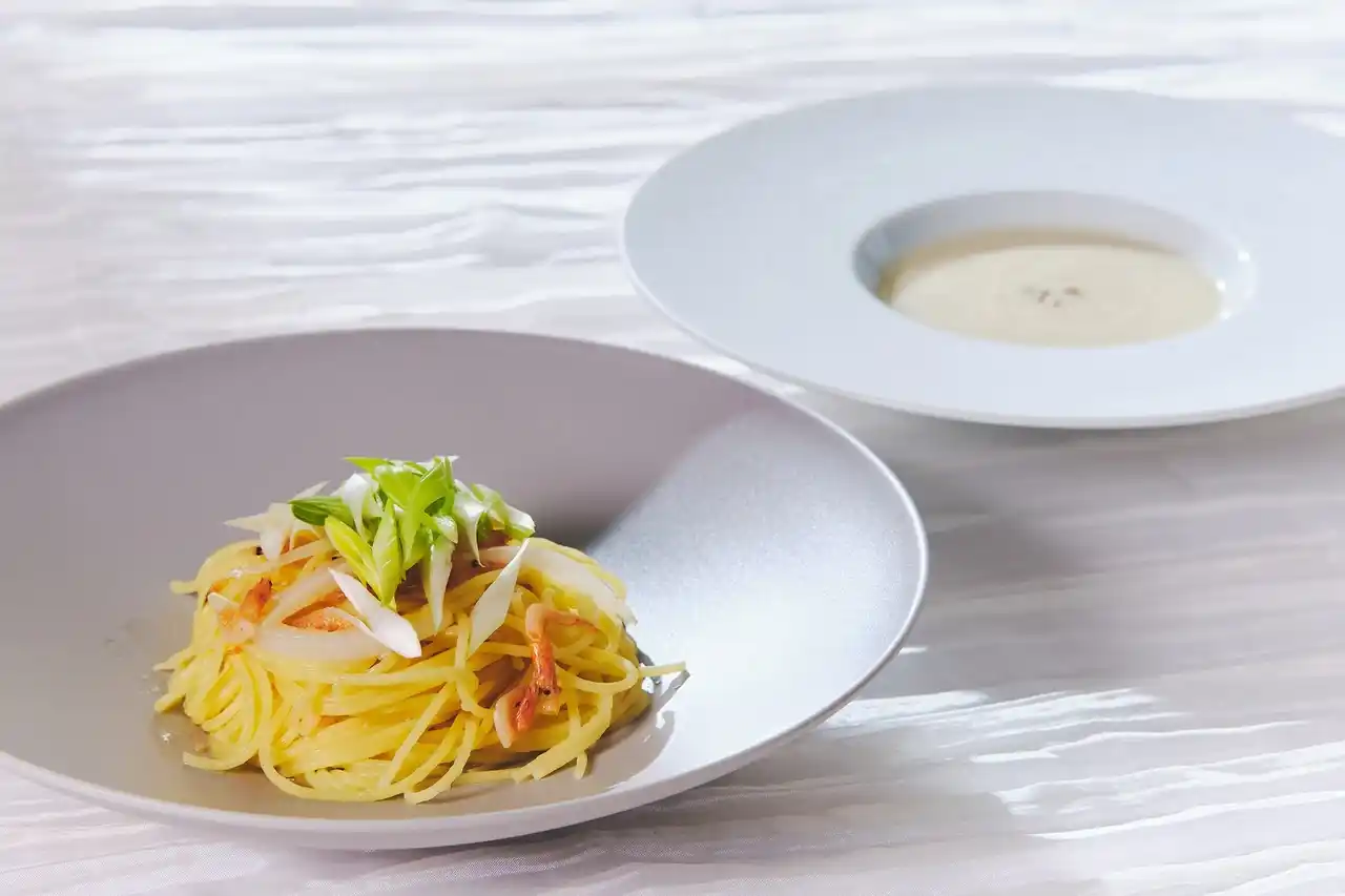 桜海老と新玉ねぎのパスタ/サルシフィーのポタージュ 1,500円 |