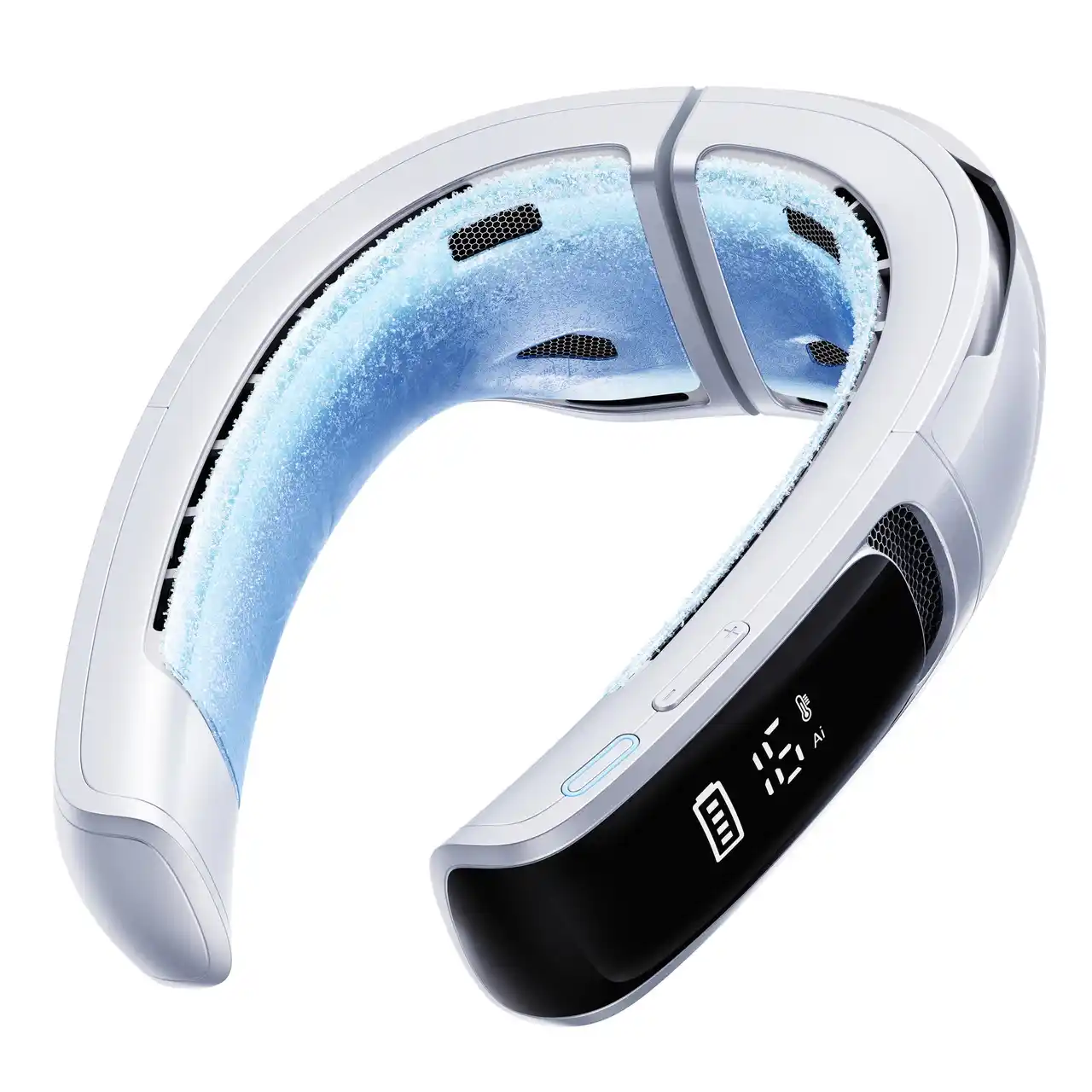 ・5.0 ICEMAX(TM)冷却技術を新たに搭載 新開発のIceMax(TM)冷却技術により、冷却効率を高め、冷却性能が約15%向上しました。 ・吸気口を4つ追加し、通気構造を改良 本体の通気構造を見直し、吸気口を4つ追加。空気の流れをよりスムーズにすることで、効率的な送風を実現しています。 ・冷却プレートの接触素材を改良 冷却プレートにはステンレス素材を採用し、製品の質感を高めるとともに、快適な装着感と冷却効果の向上を実現しました。 ・風量が約30%アップ 送風性能を強化し、従来モデルと比較して風量が約30%向上。暑い環境でもしっかりと涼しさを感じていただけます。 ・AI電力管理の採用 バッテリー容量と稼働時間は前モデルと同等となっておりますが、新世代のAI冷却システムと高効率チップの採用により、同じ電力消費でもより強い風量と高い冷却効果を実現しています。 |