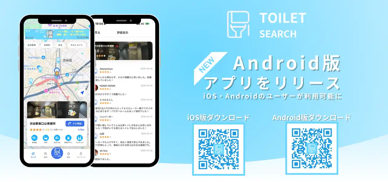 株式会社TOILET SEARCH(本社:東京都港区、代表取締役社長:大隅豊仁)は、トイレ検索アプリ「TOILET SEARCH」のAndroid版を正式リリースしたことをお知らせいたします。