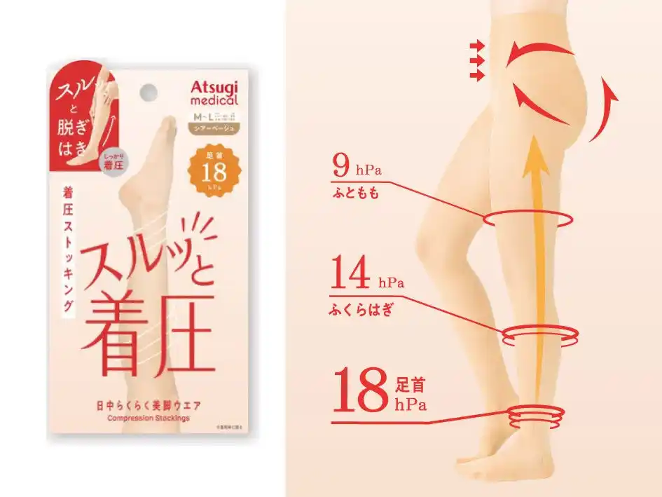 アツギ株式会社(本社:神奈川県海老名市、代表取締役社長:日光信二)は、2026年春夏シーズンに立ち上げたAtsugi Medical(アツギメディカル)カテゴリーより、普段着やお仕事着に合わせて楽にはける着圧レッグウェアブランド「スルッと着圧」を発売いたします。アツギオンラインショップでは2026年3月23日(月)発売、店頭では3月下旬より順次展開いたします。 |