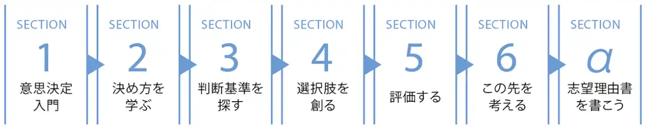 | 納得のいく進路選択をめざし、意思決定のプロセスを体系的に学べるプログラムです。高等学校・中高一貫校の授業プログラムとして河合塾が開発し、これまで延べ1万人が受講しています。意思決定のプロセスに沿った6つのセクションで構成され、ワークを通して自己理解を深めながら、納得のいく進路を選ぶ方法を身につけます。2022年度グッドデザイン賞受賞。 | |||||||||||||||||||||||