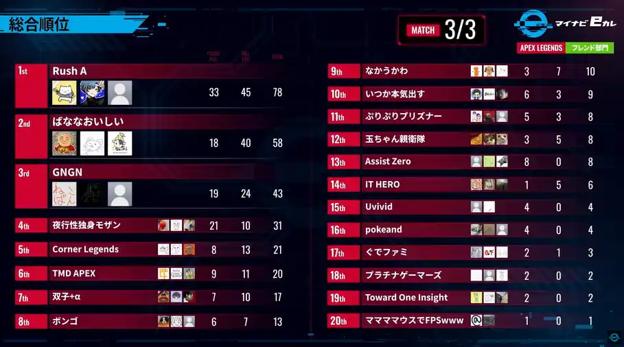 また、大学生対象という枠組みで賞金が用意される大会が開催されることで、Apexとしても新しい土壌ができたと感じます。このマイナビeカレが良い選手の育成の場になることを祈っています。 |