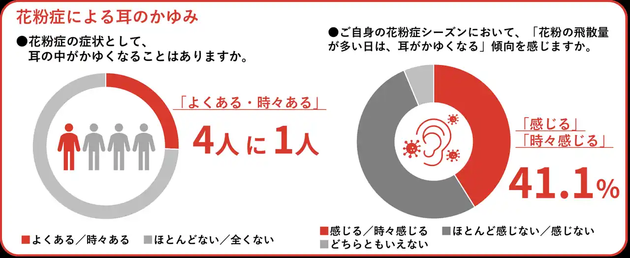 うち4割は「花粉の量が多い日は耳がかゆくなる傾向」と回答。